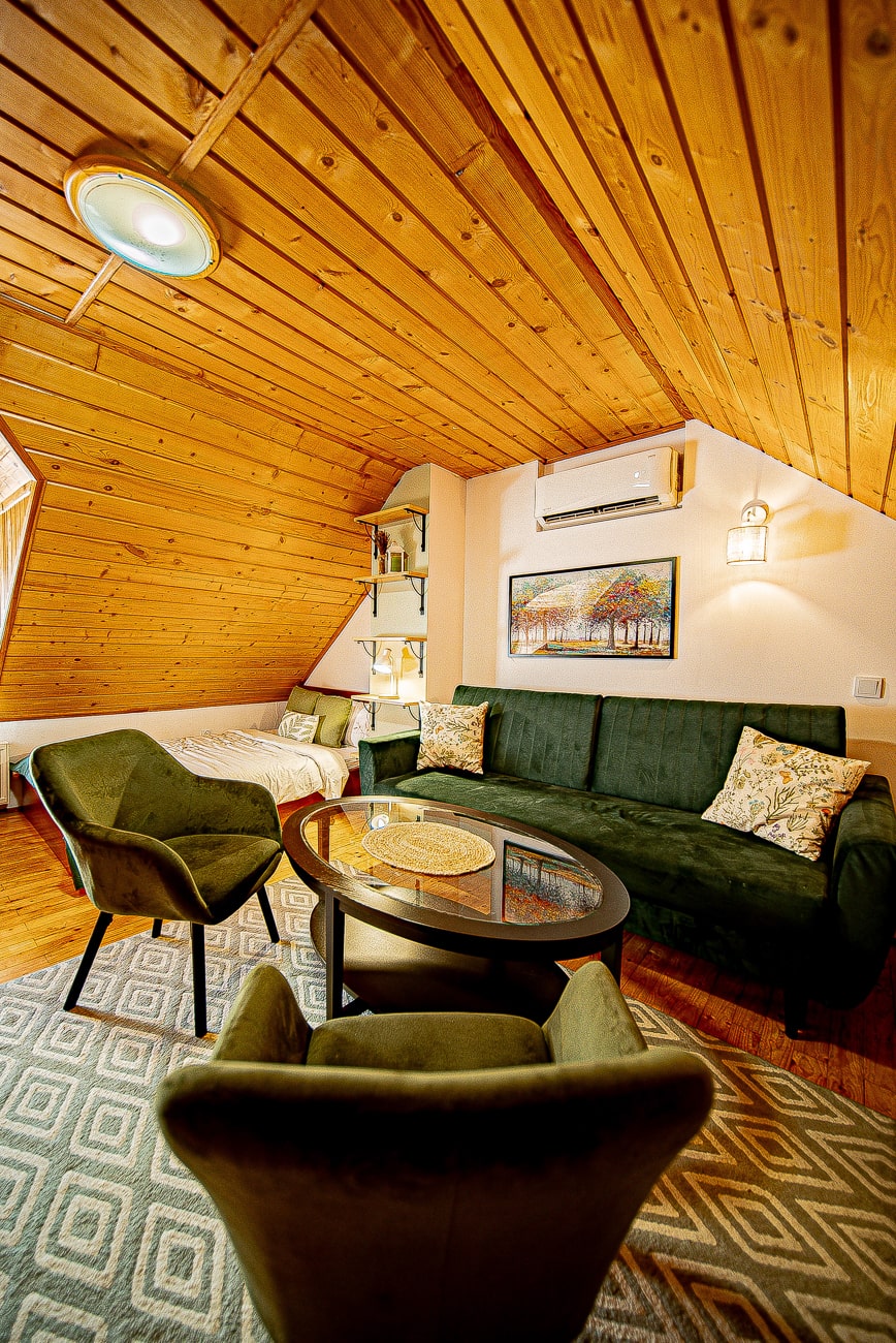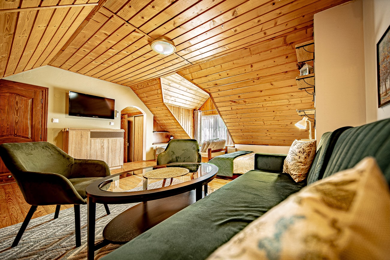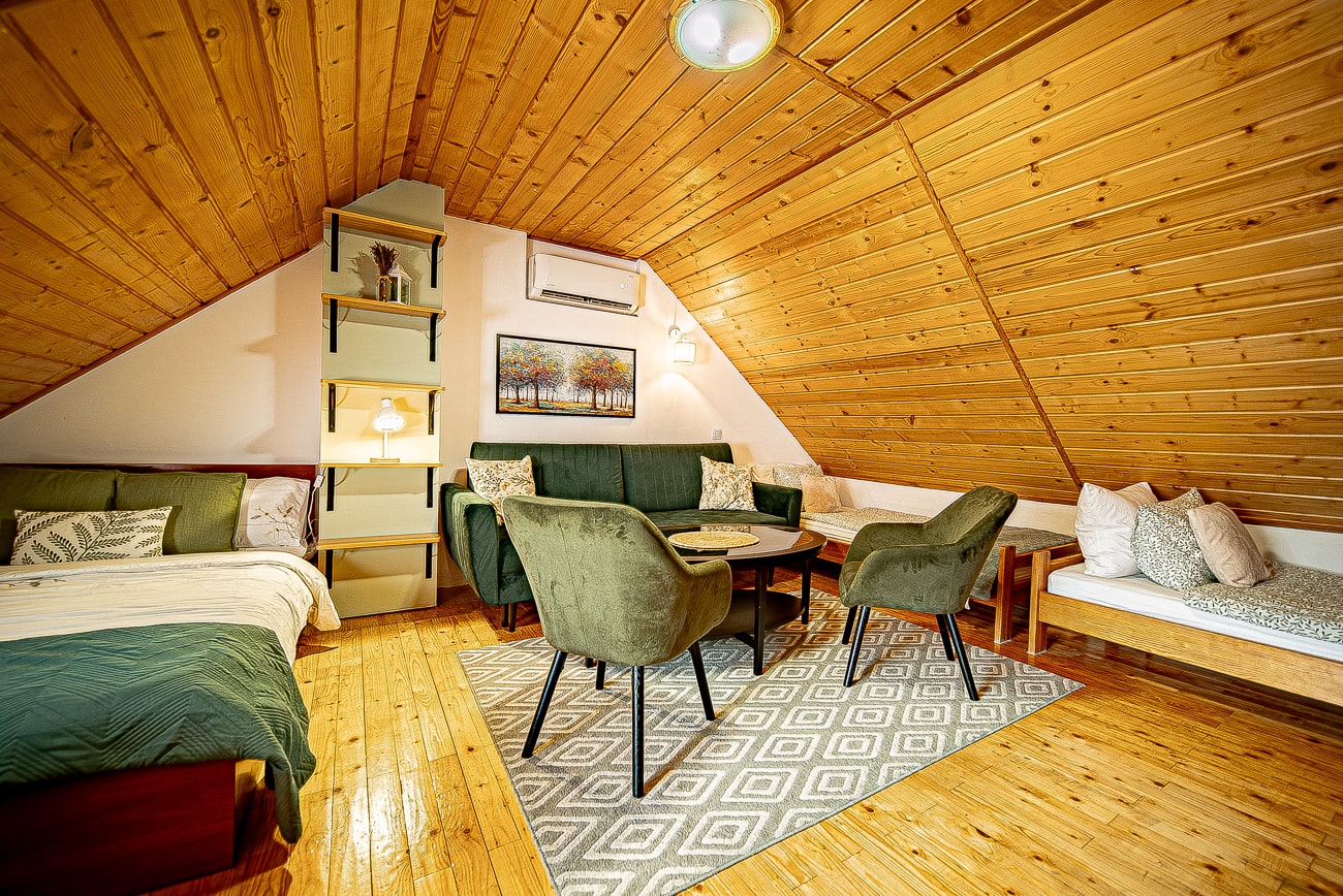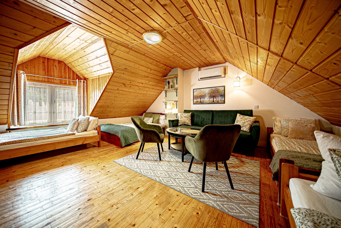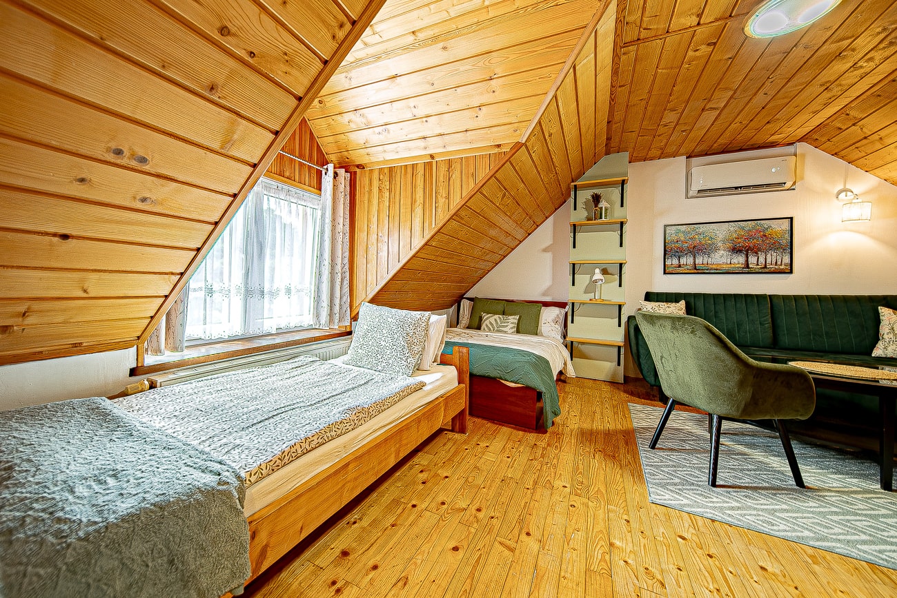 Pokój nr 4 to przestronna i komfortowa przestrzeń stworzona z myślą o rodzinach lub grupach przyjaciół, które cenią wygodę, spokój.